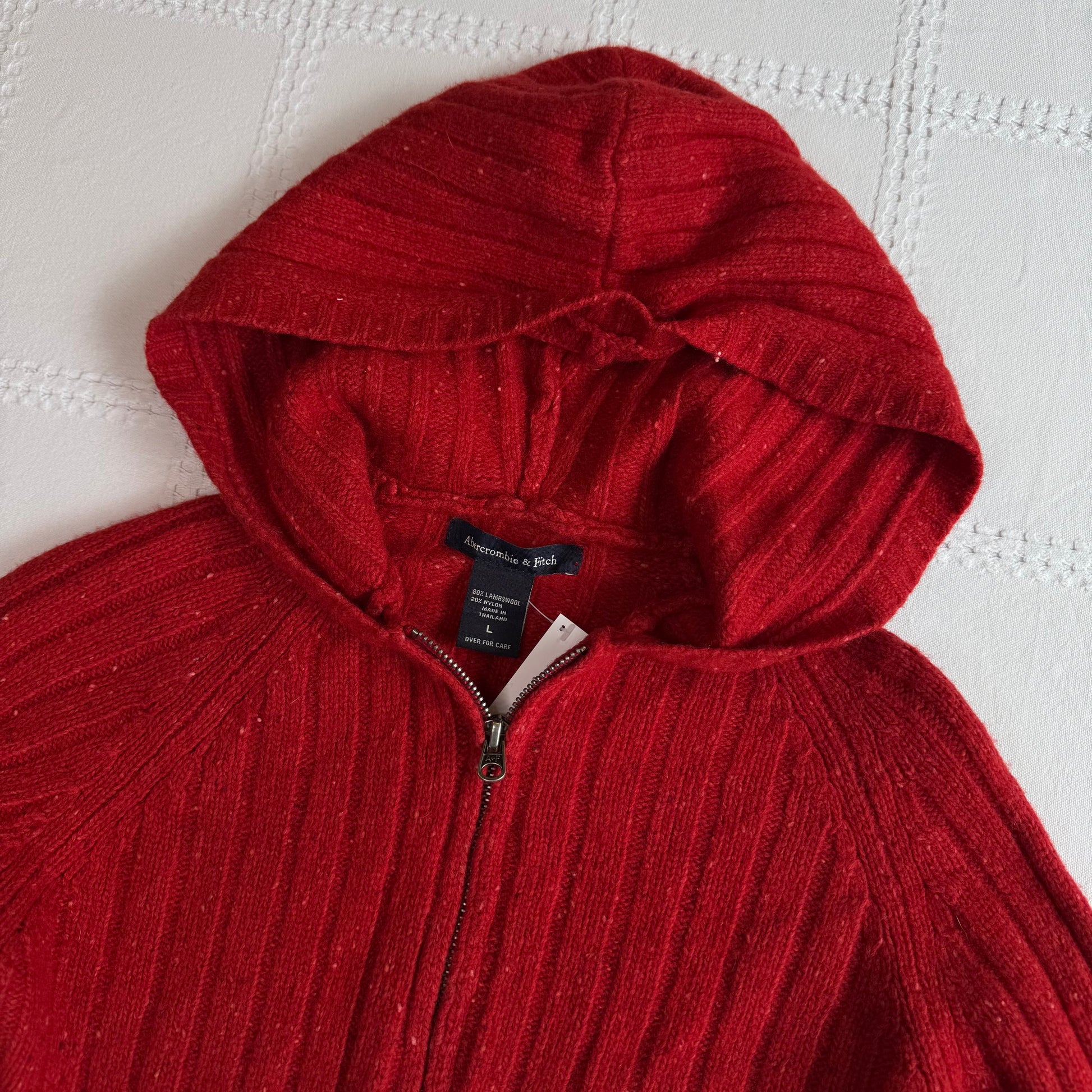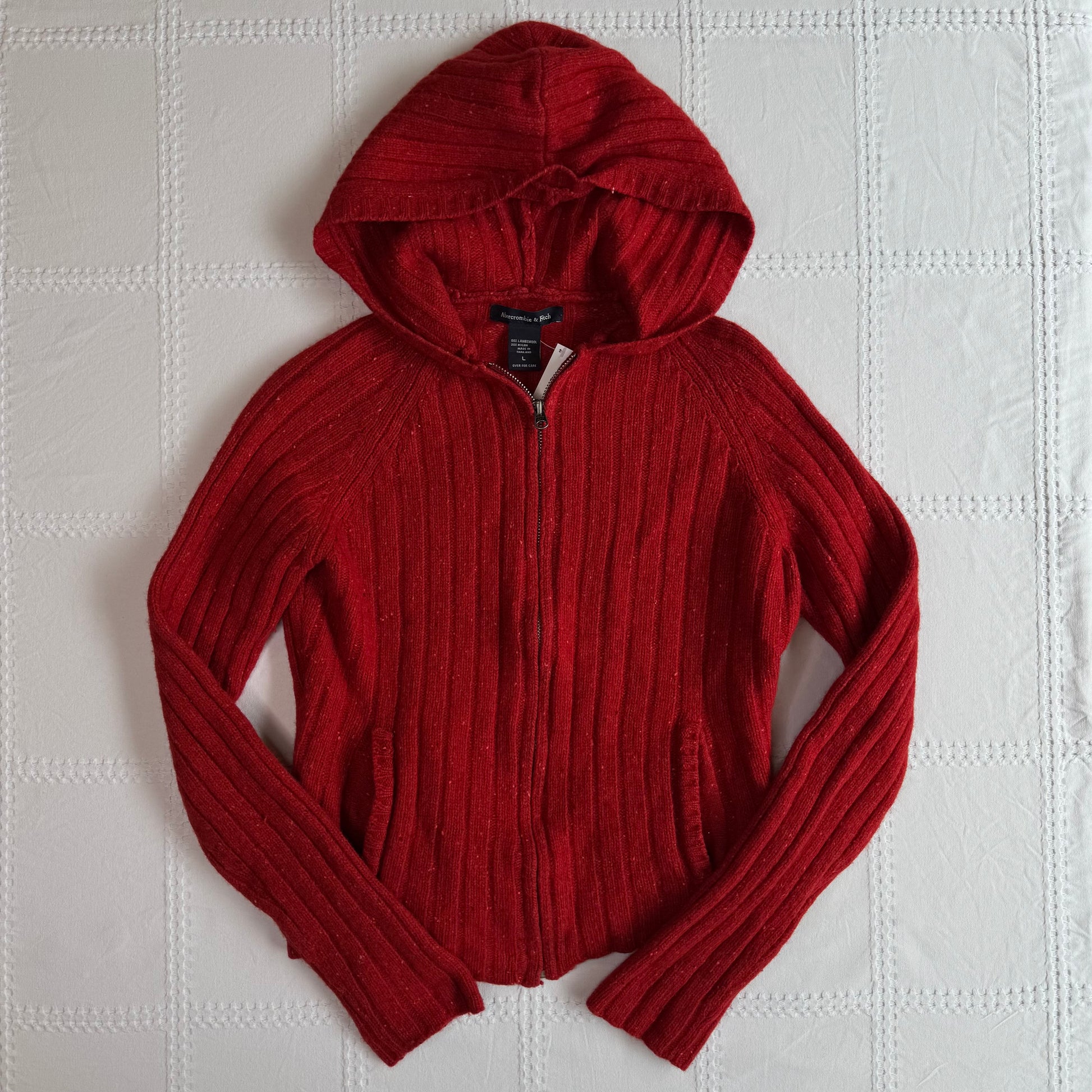 Adorable 00s Abercrombie & Fitch red knit zip up hoodie 𧸠80% lambswoolÂ