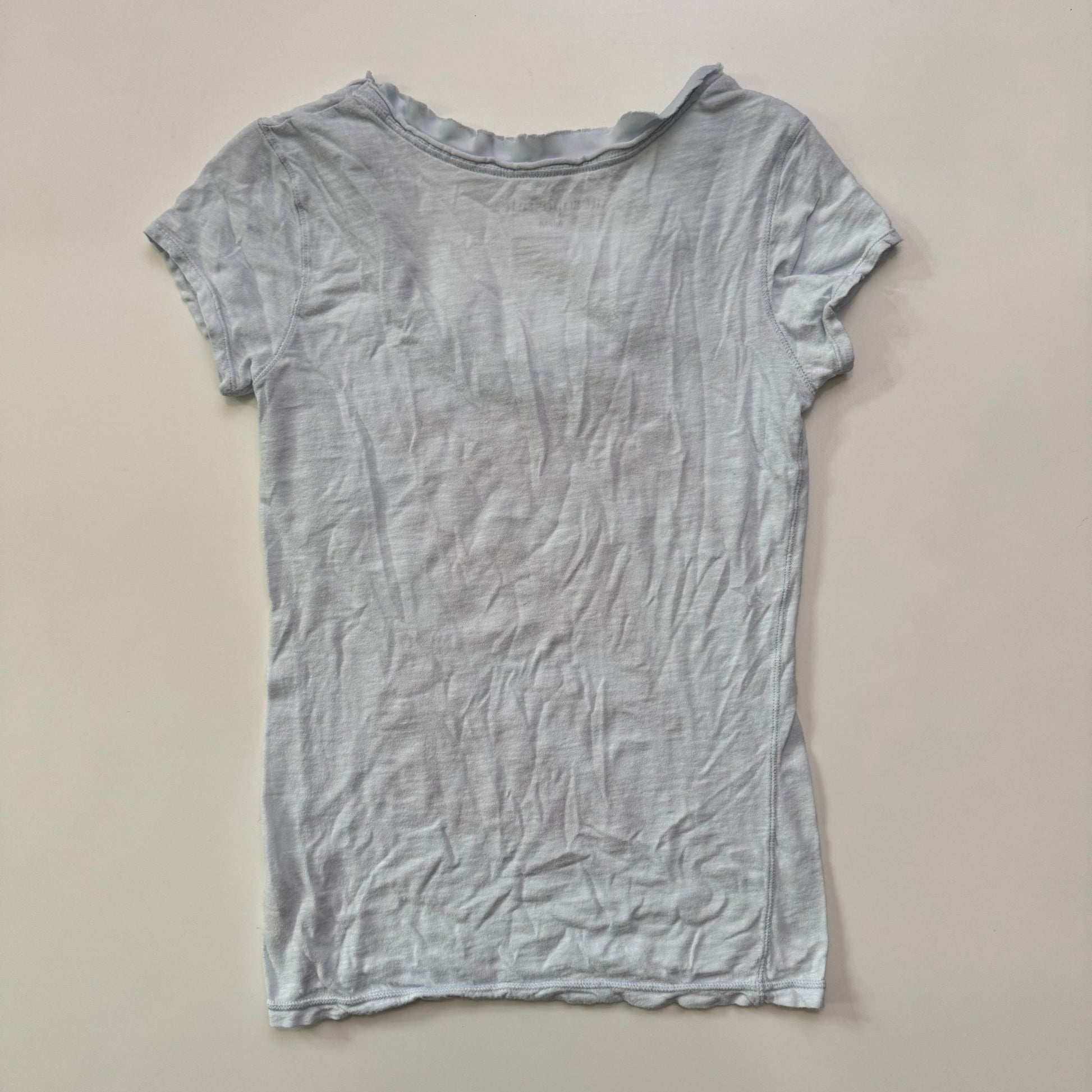 Adorable 00s Aeropostale light blue baby tee with ruffle hem & beading detail 🩷