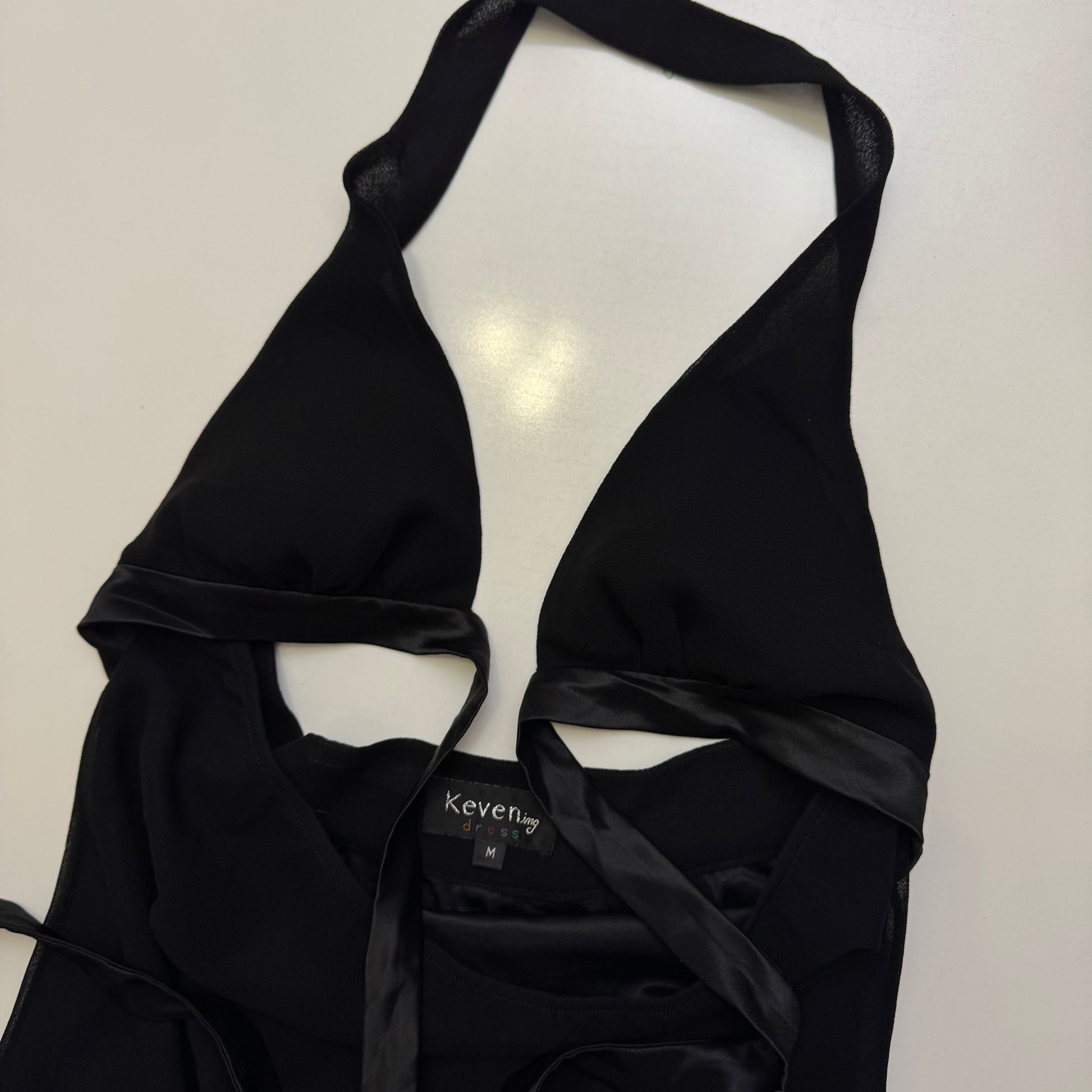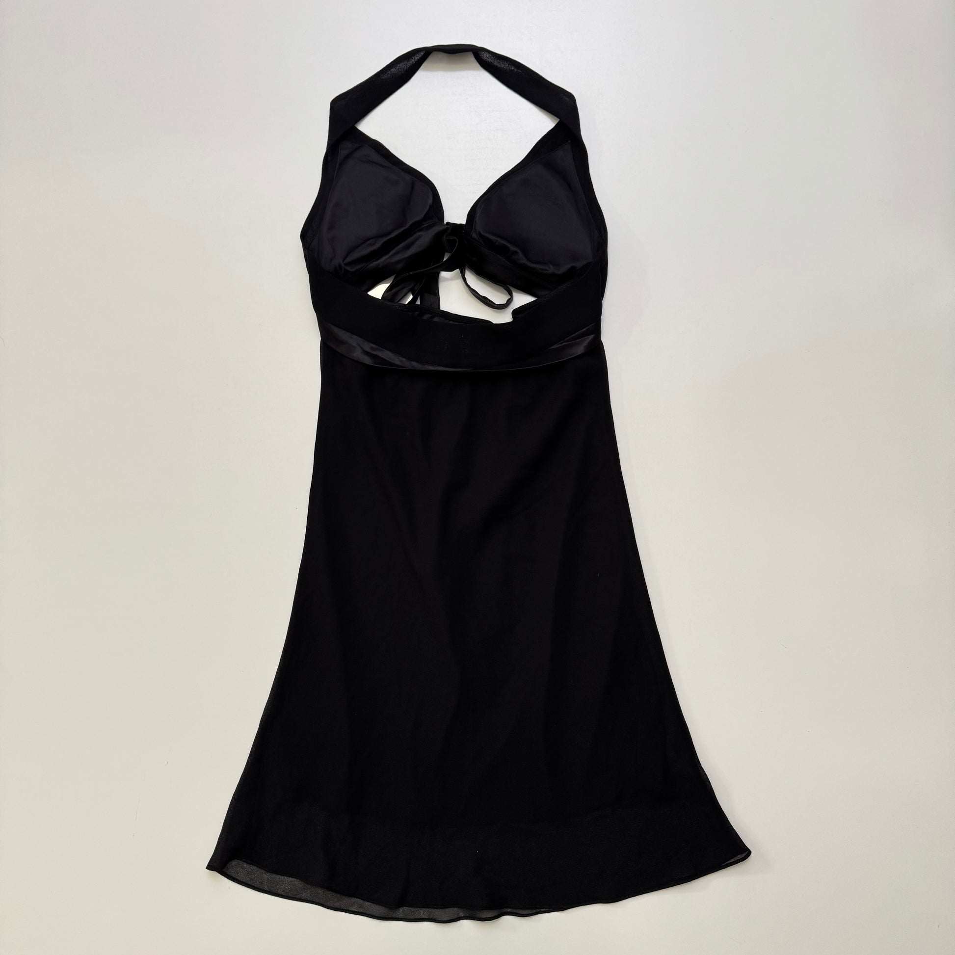 Darling 00s black babydoll halter neck midi dress 🍸 Love the front tie & cut out 💋