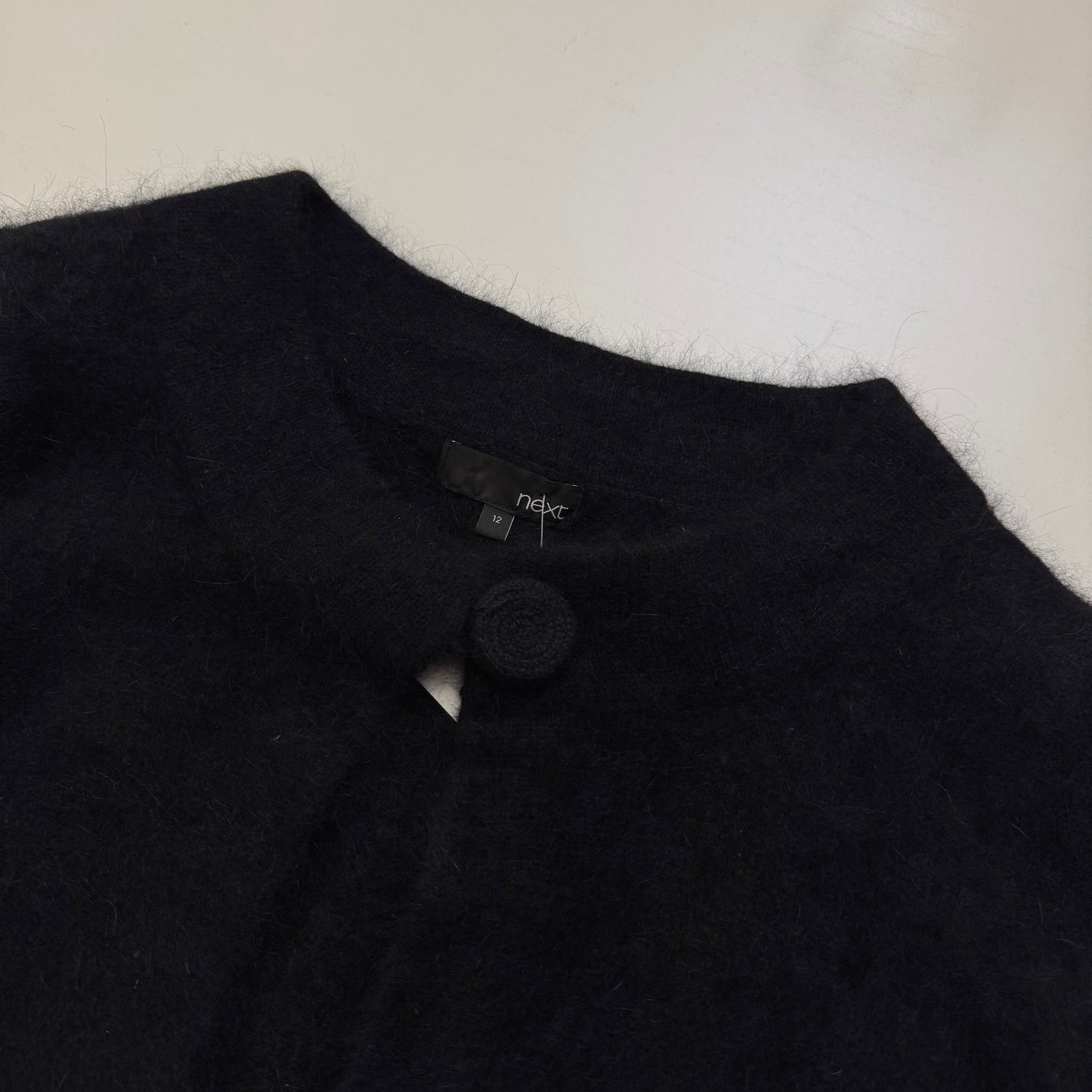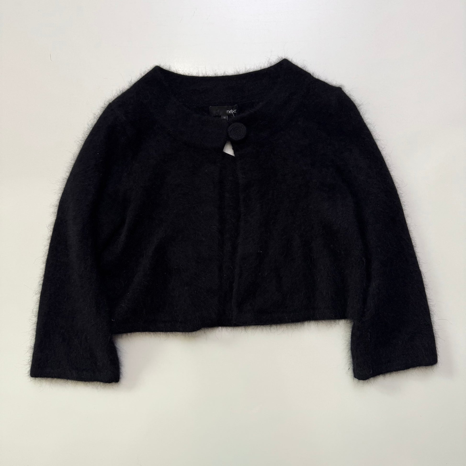 Adorable black knit cardigan with 3/4 sleeves 🩰 No tag but feels like a wool/mohair blend 🤍
