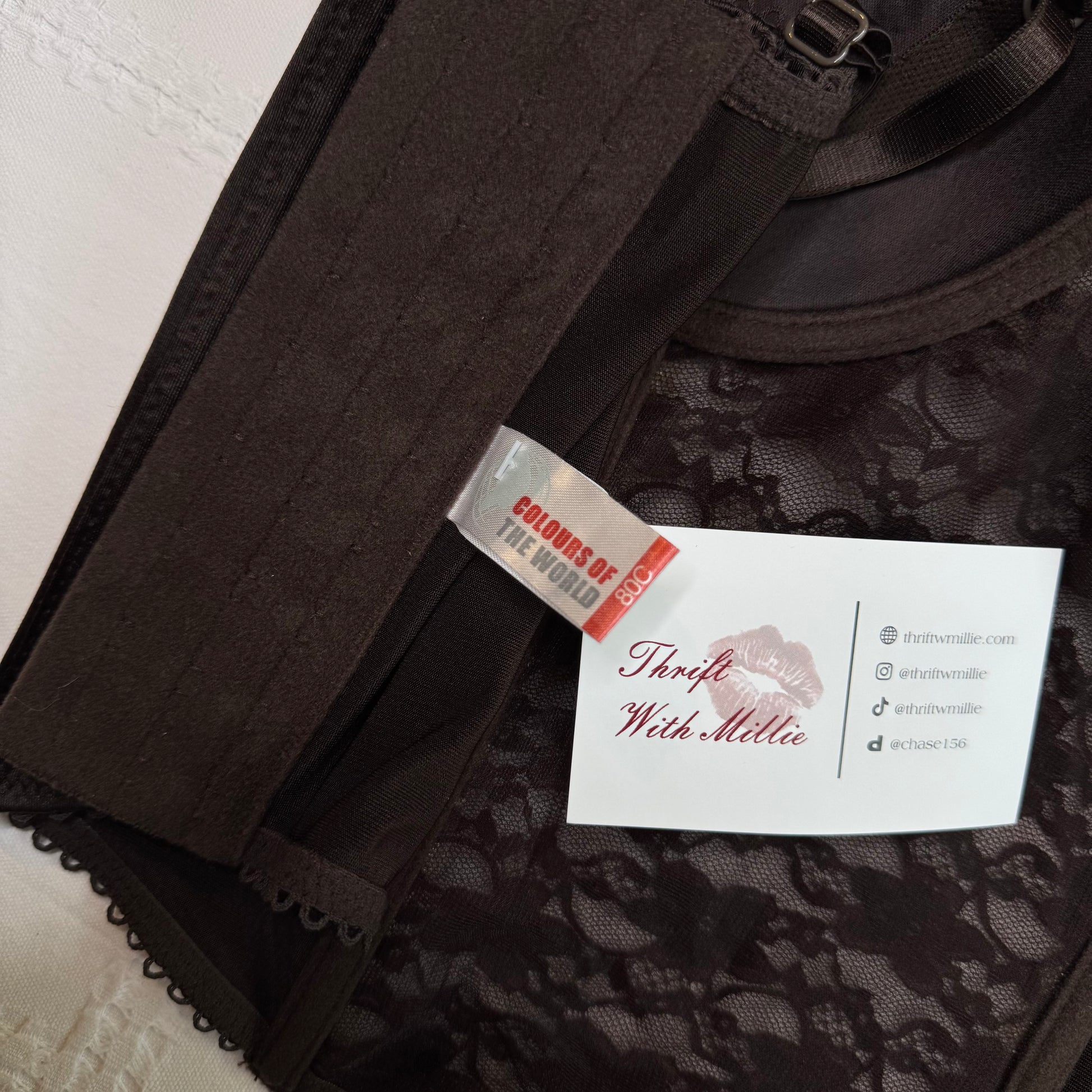 Gorg vintage chocolate brown corset top with lace details & cute trims 💛