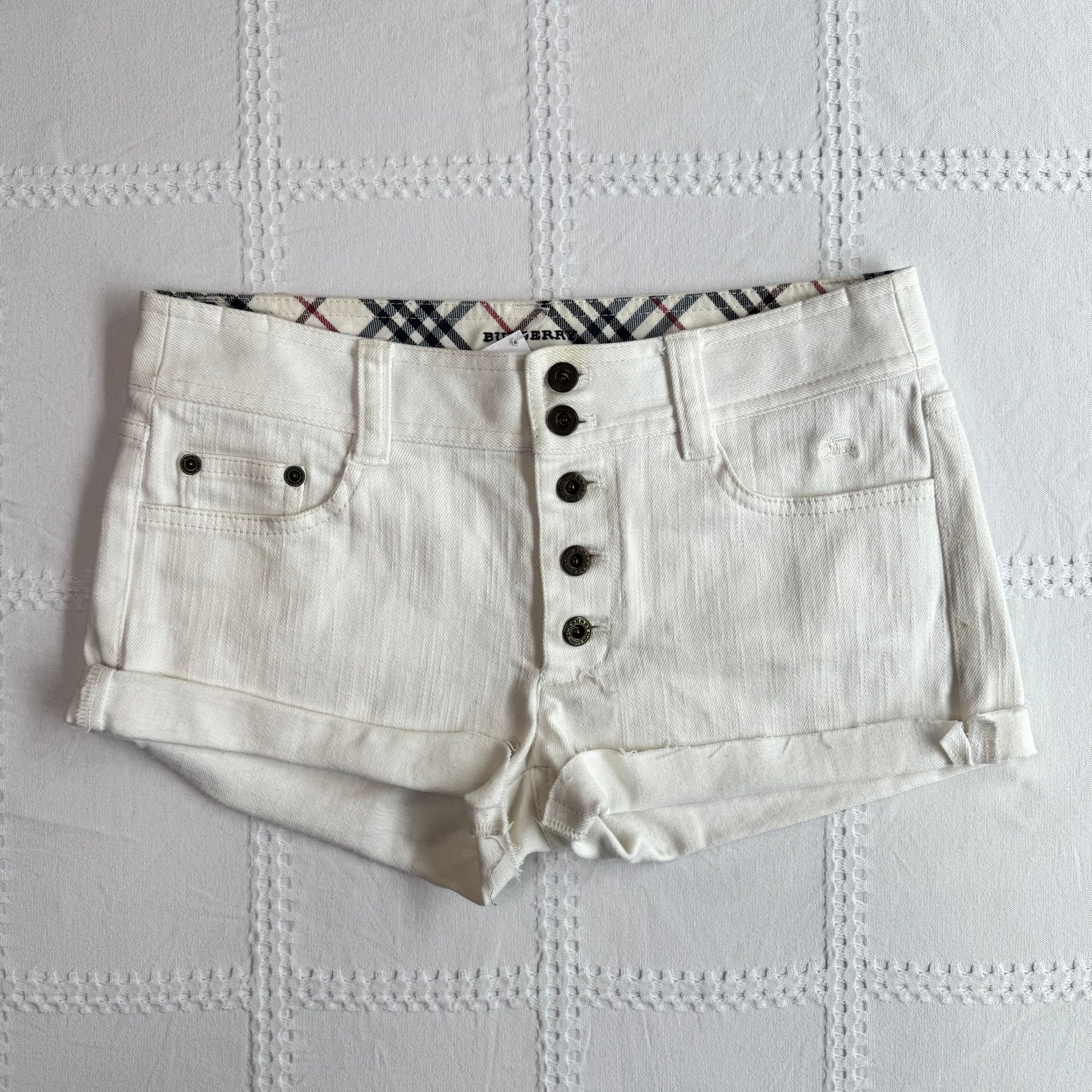 Cutest Burberry white denim shorts with buttons ♥️ Mid rise