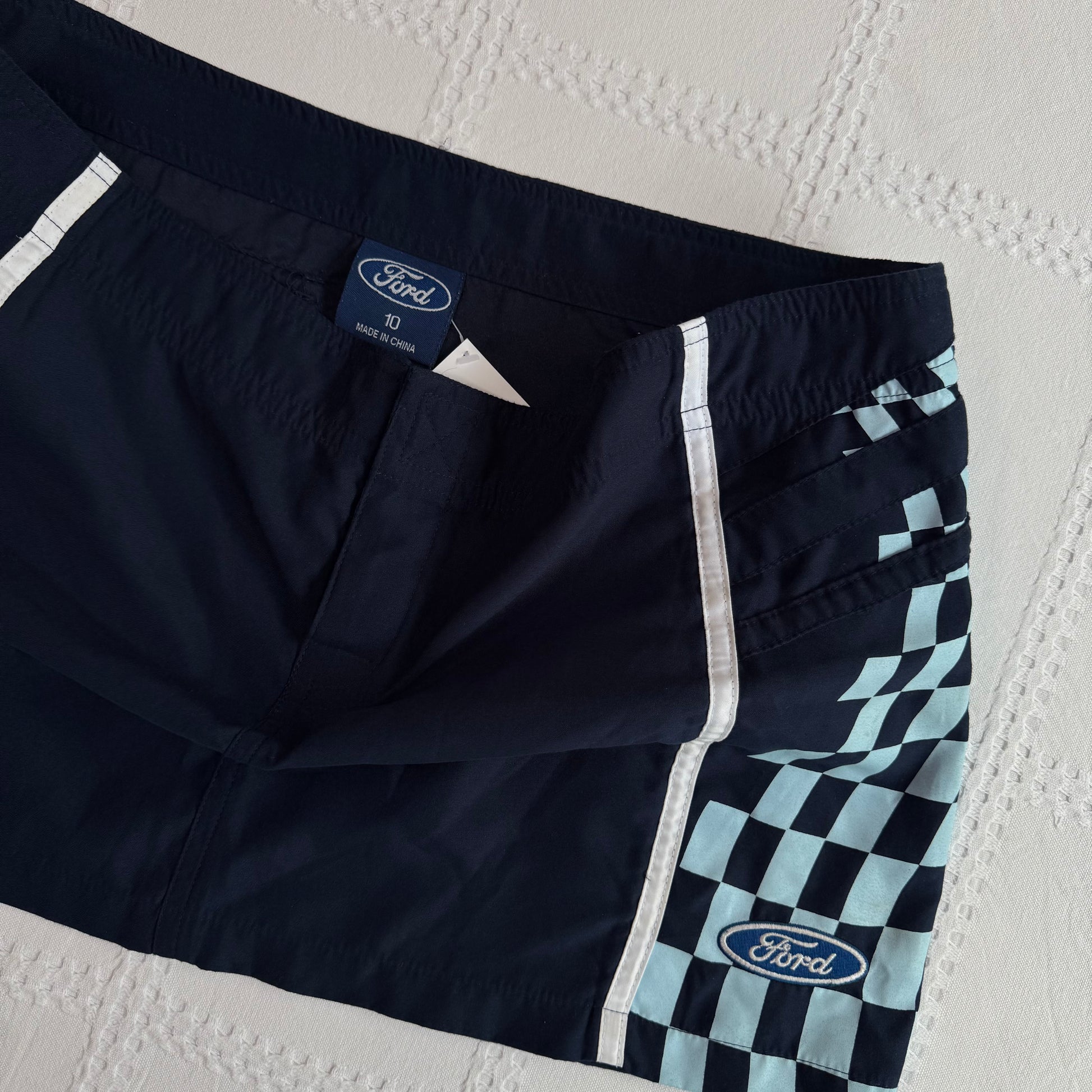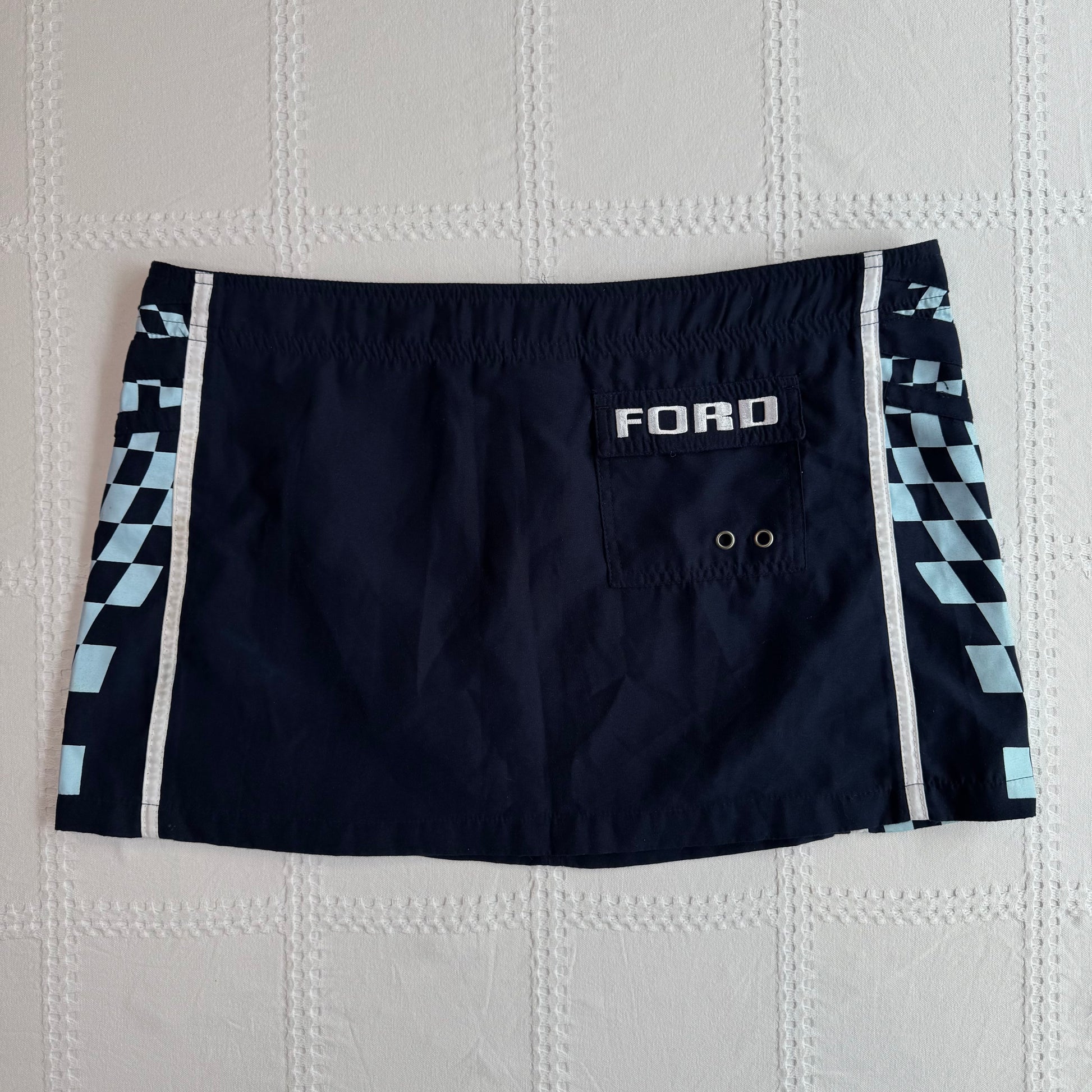 Sick 00s navy Ford mini skirt with embroidered logos 🩵 Low rise