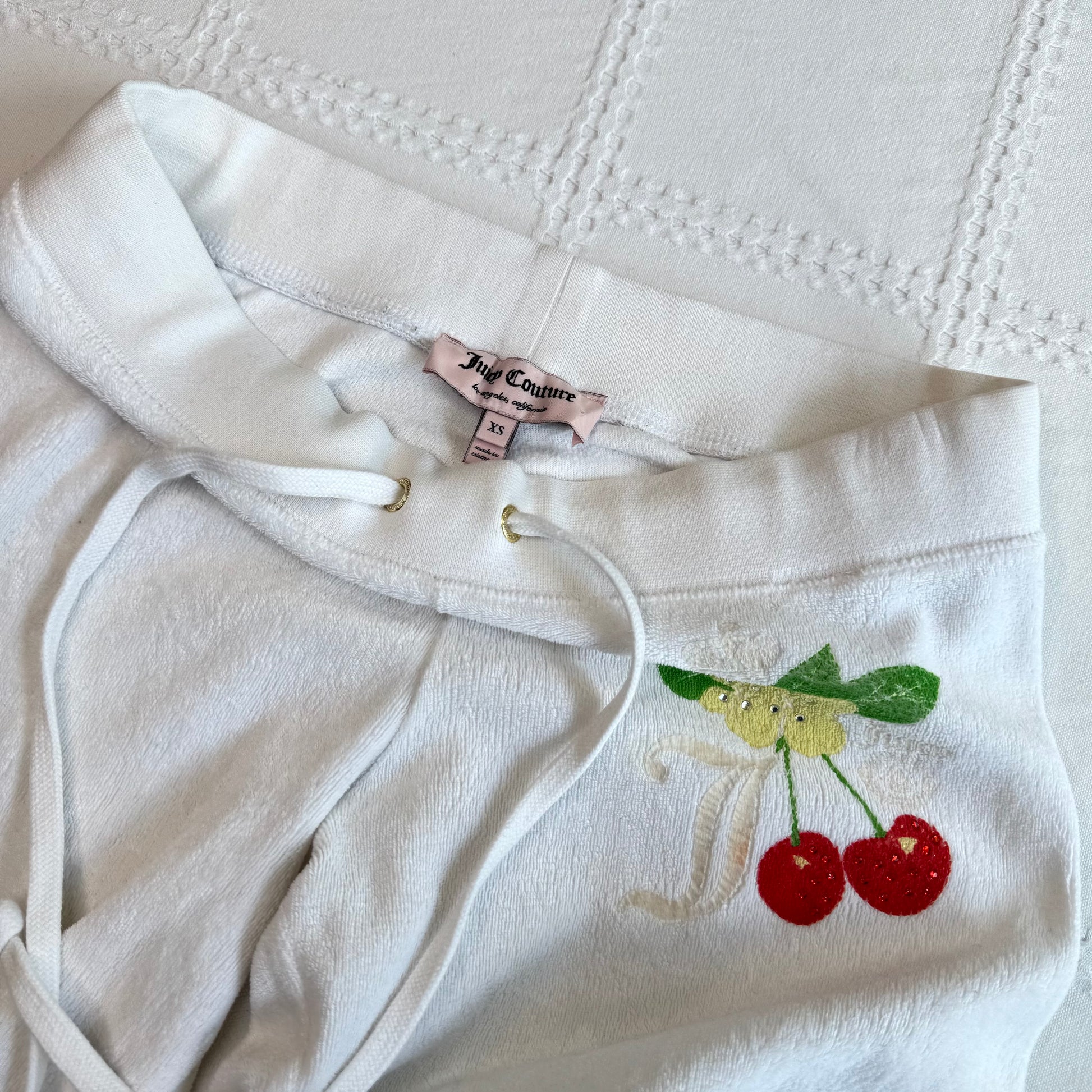 In love with these 00s Juicy Couture low rise white velour pants with ‘J’ cherry logo 🍒 So cute & flattering 😻