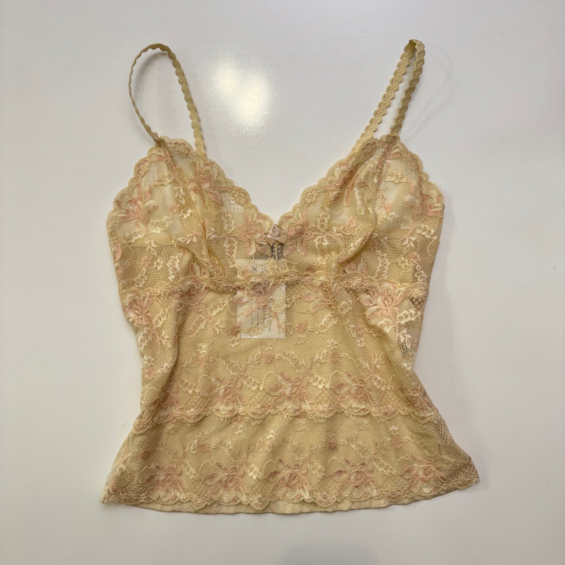 Adore this 00s pink + cream sheer lace babydoll cami top 🎀 So flattering