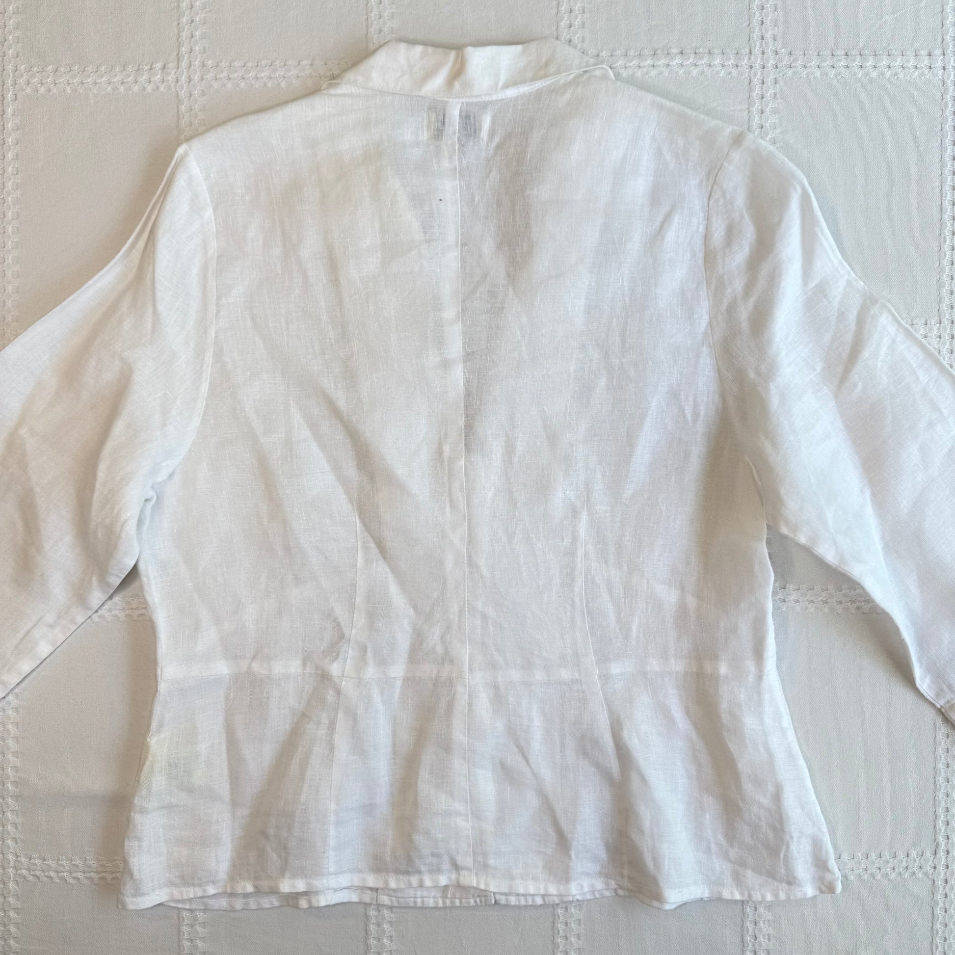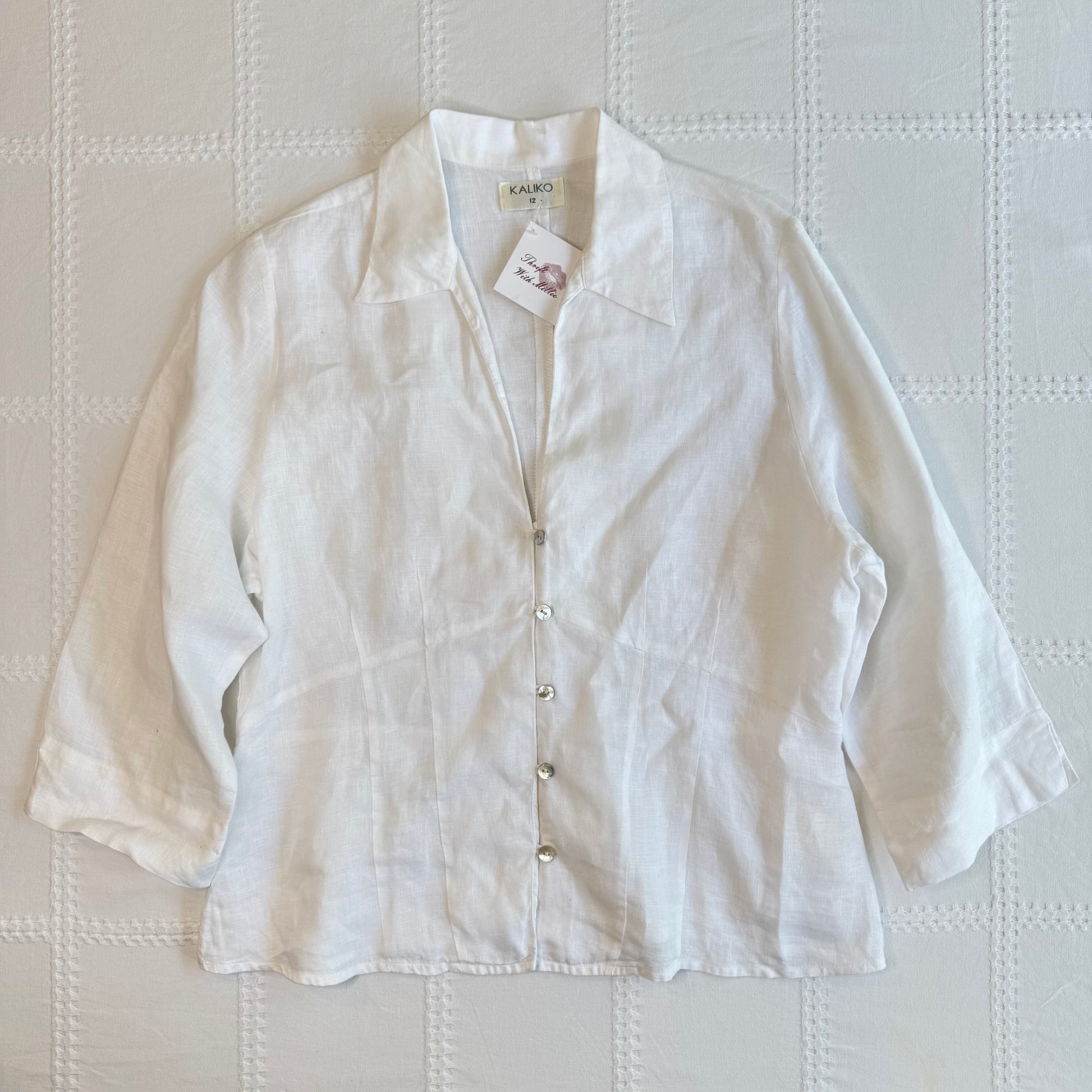Lovely vintage white 100% linen 3/4 sleeve button up blouse 💛