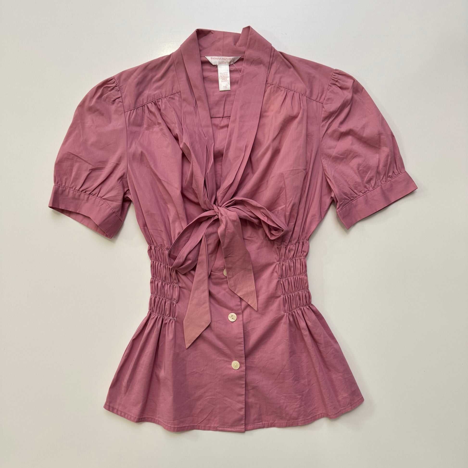 Pink button up blouse with cinched waist & tie detail 🎀 Adore this!