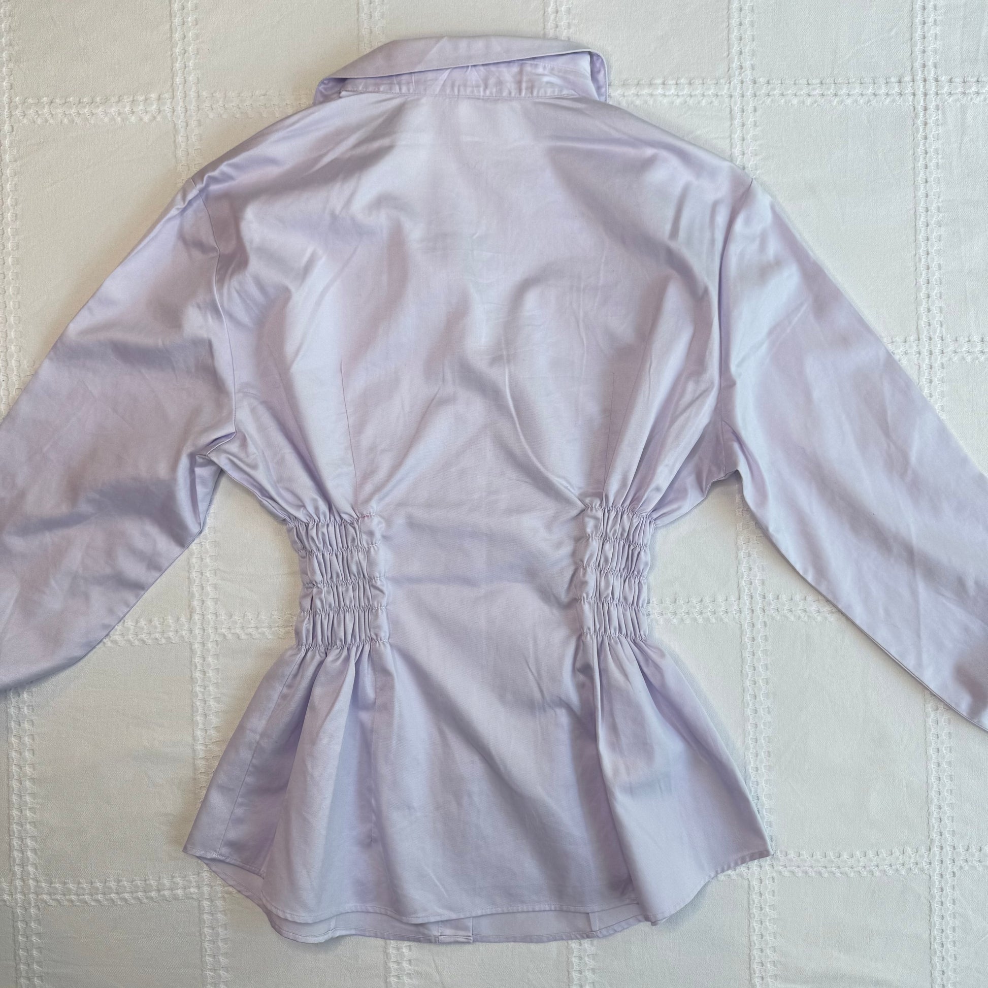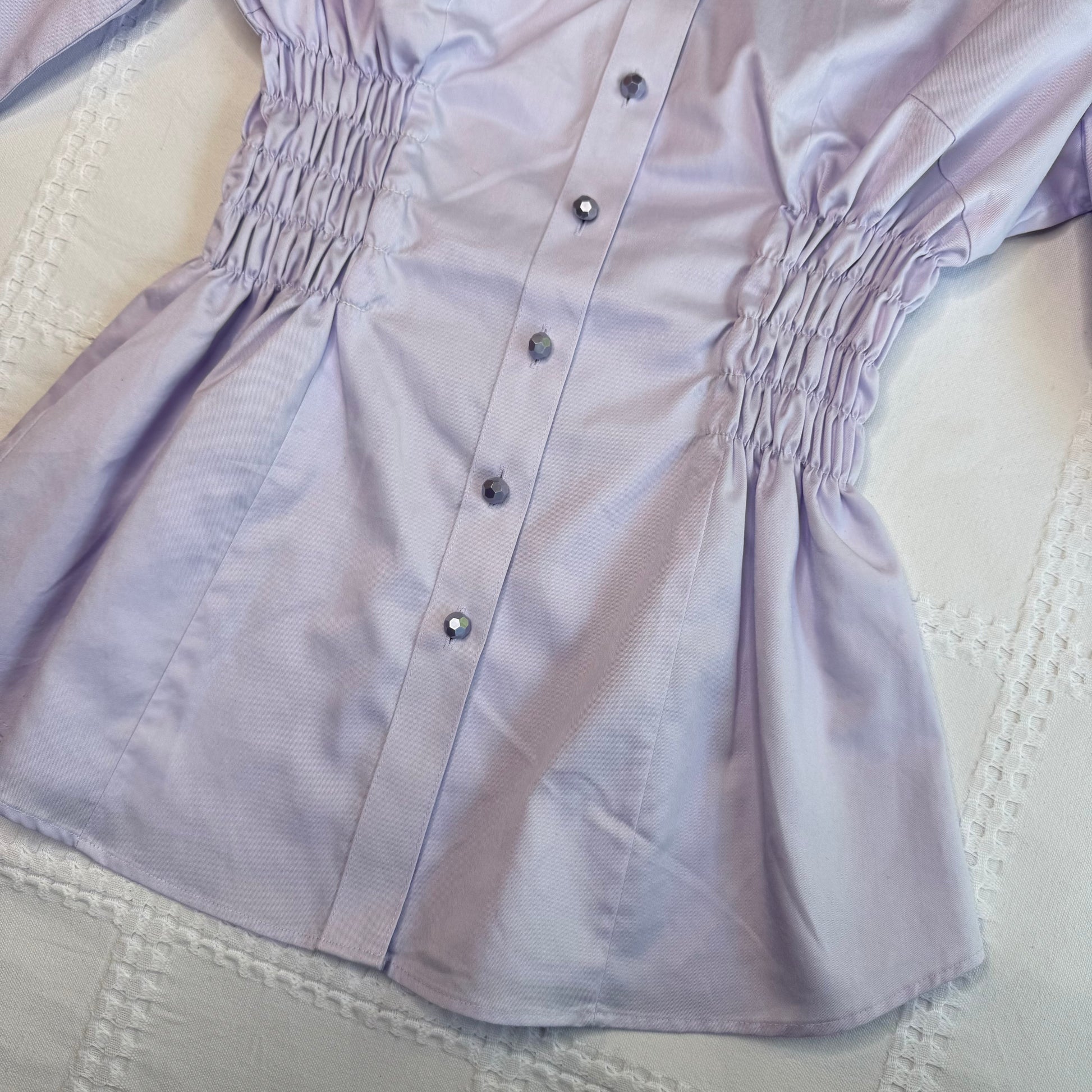 Perfect purple button up blouse with cinched waist & cute buttons 🪽