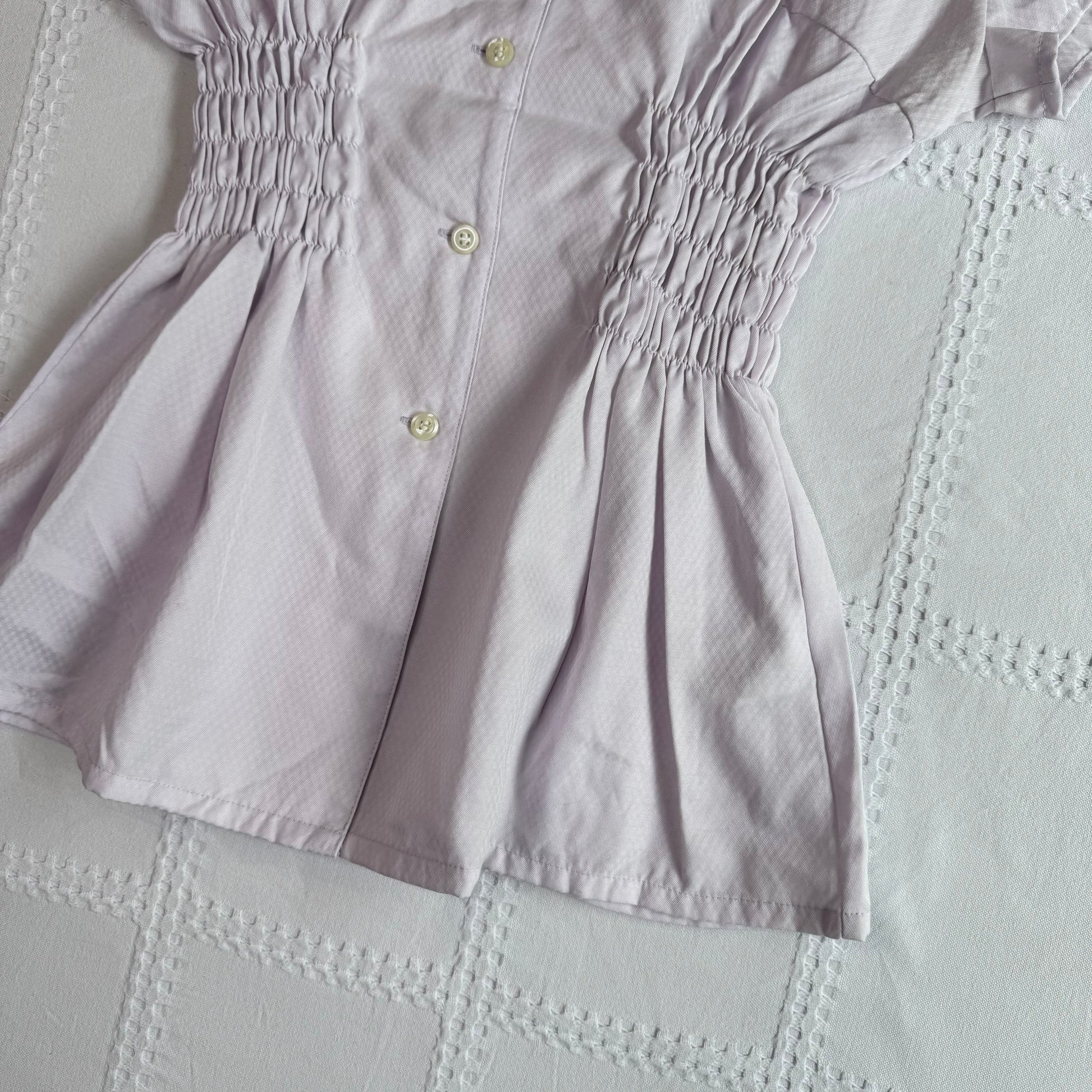 Flattering purple button up blouse with cinched waist 💌