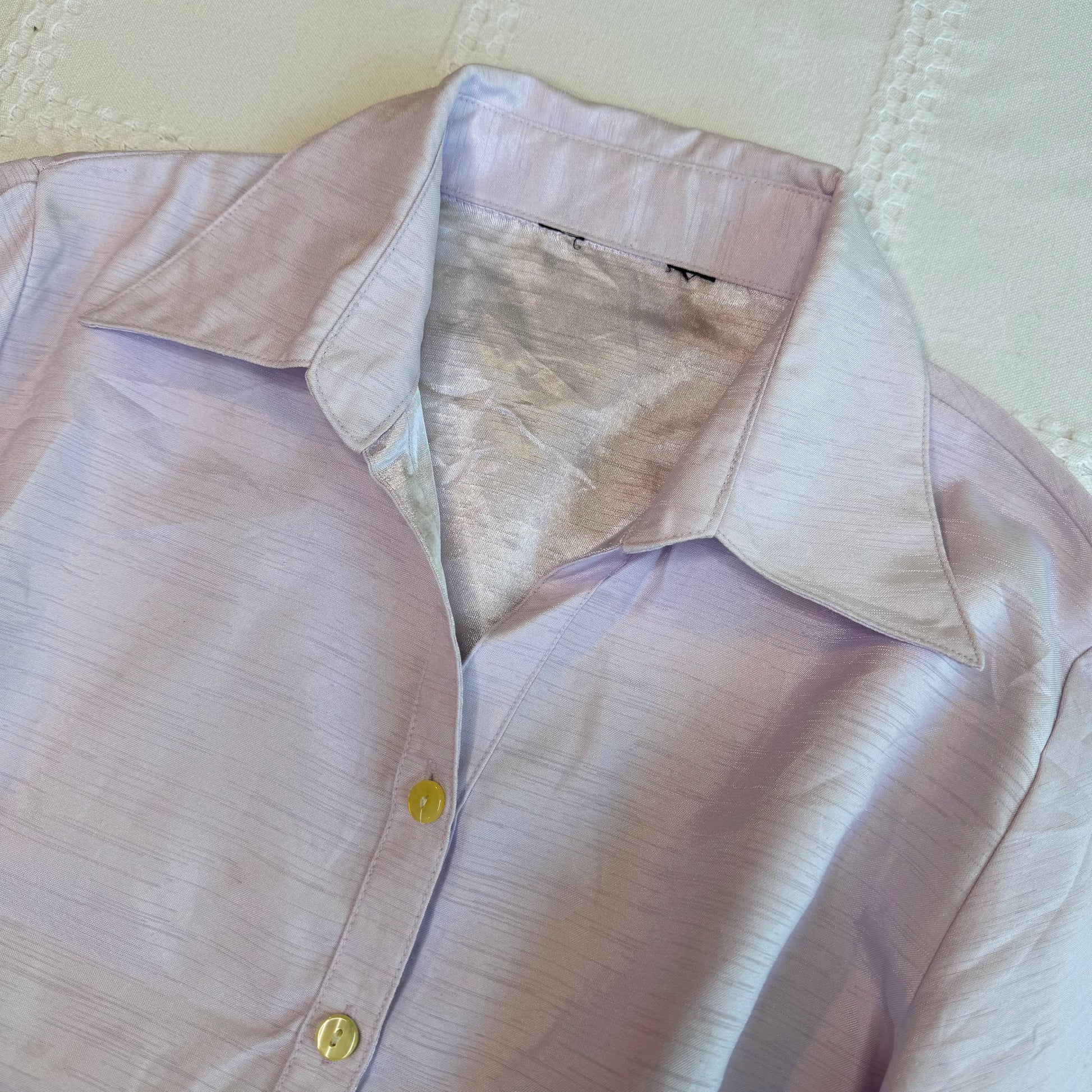 Stunning lilac sheen button up blouse with cinched waist & 3/4 sleeves 💟 My fav!
