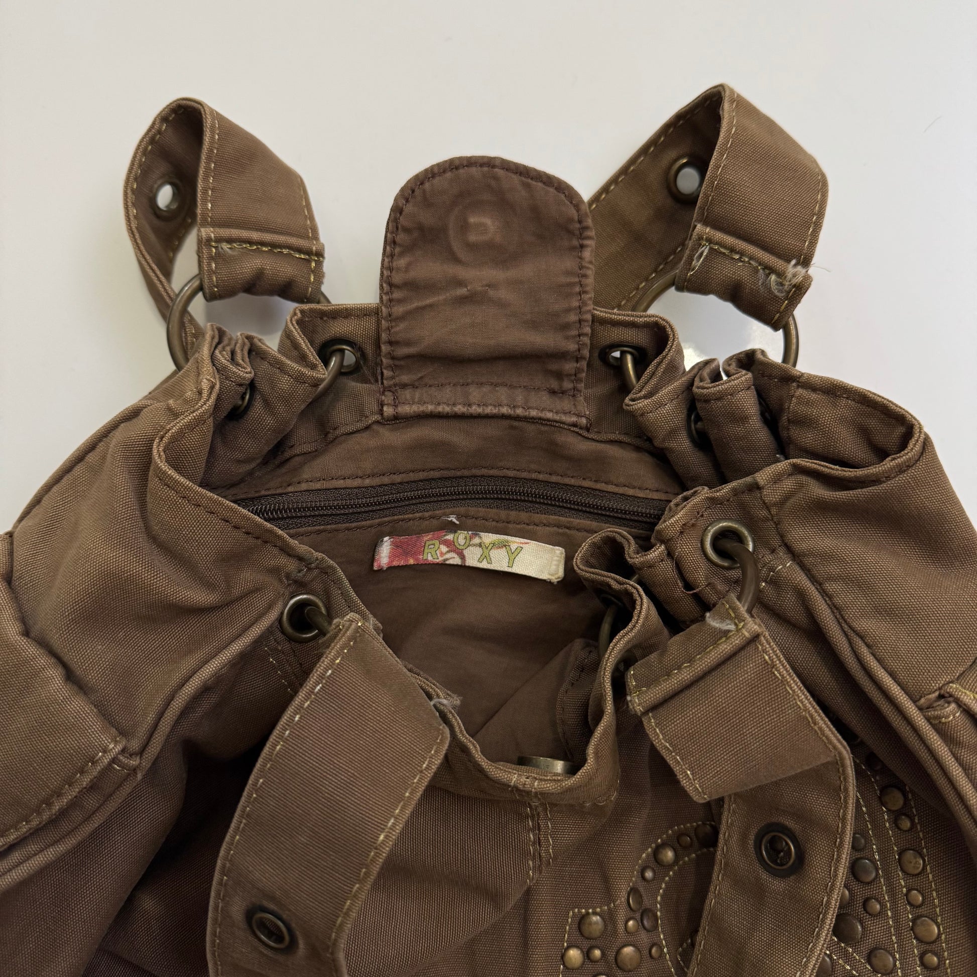 Cutest 00s Roxy brown shoulder bag with cargo pockets & embellished logo 🌺
