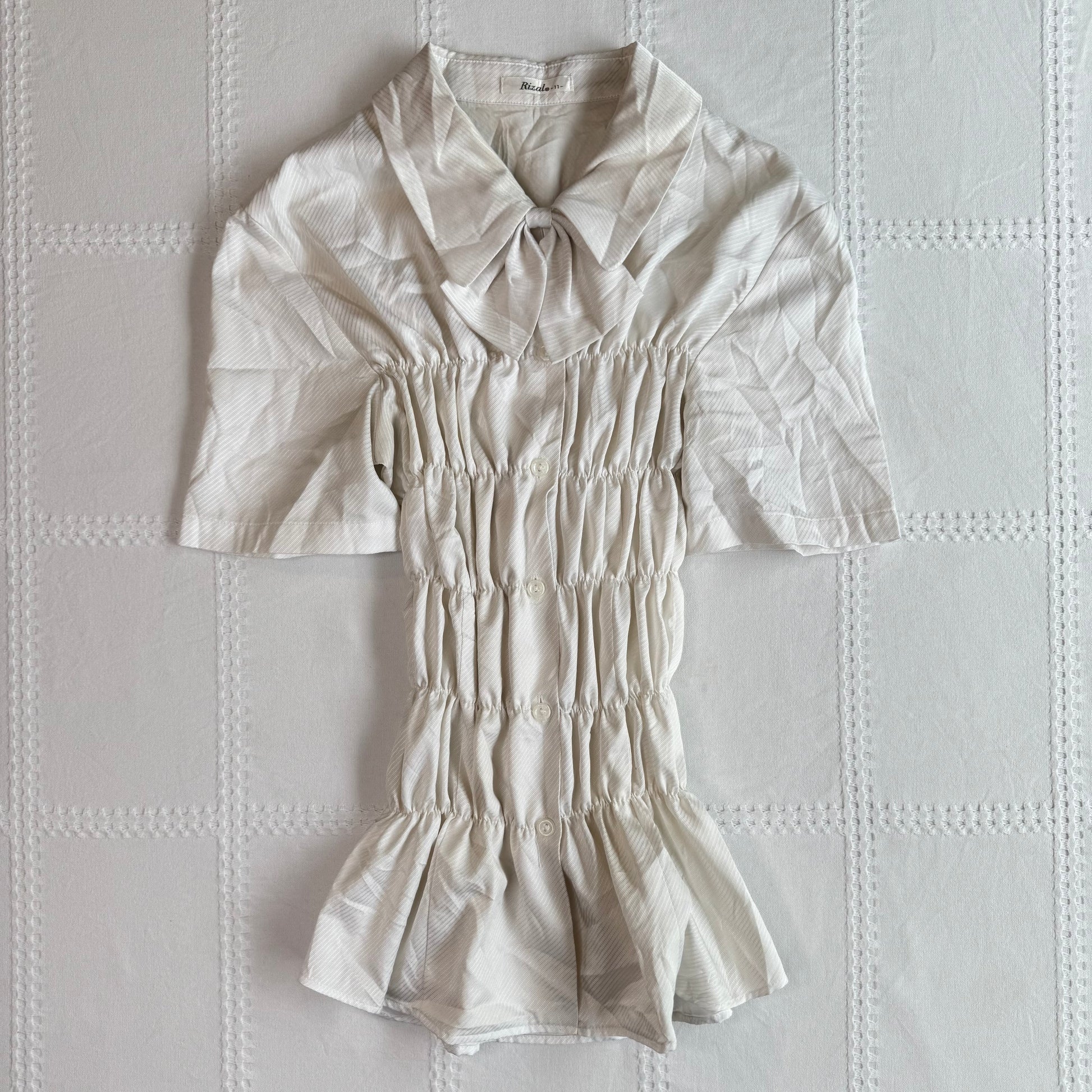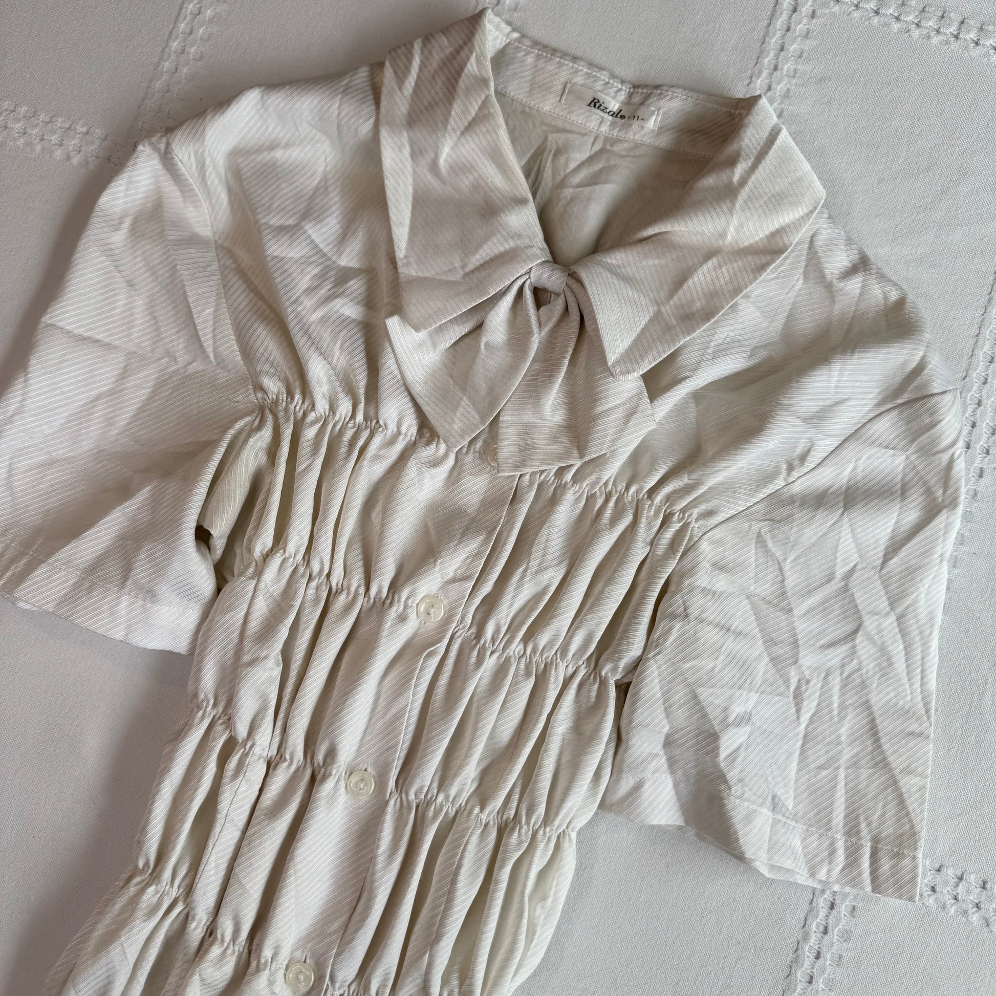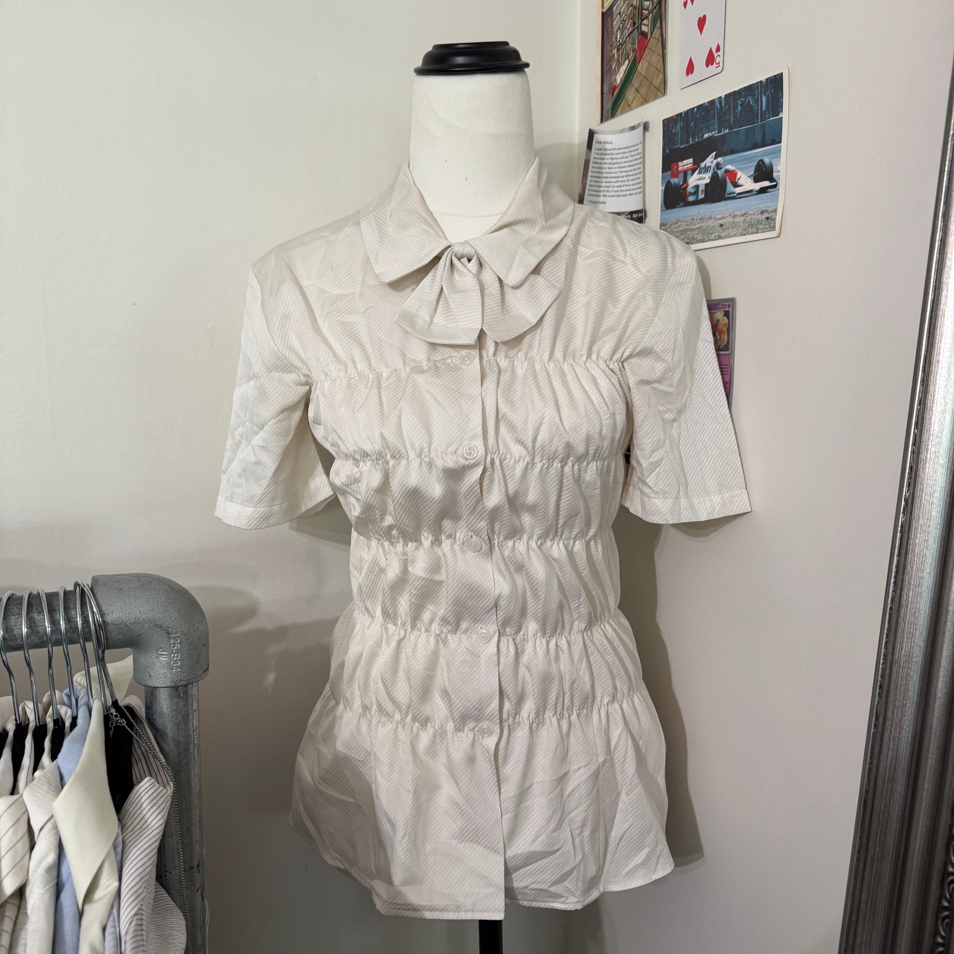 Gorgeous ruched button up blouse with cute removable bow tie 🎀