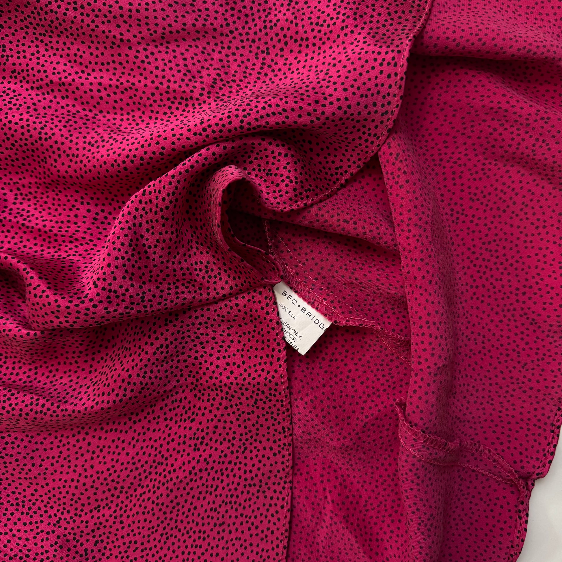 Stunning Bec & Bridge pink + black polka dot 100% silk mini dress 🪩