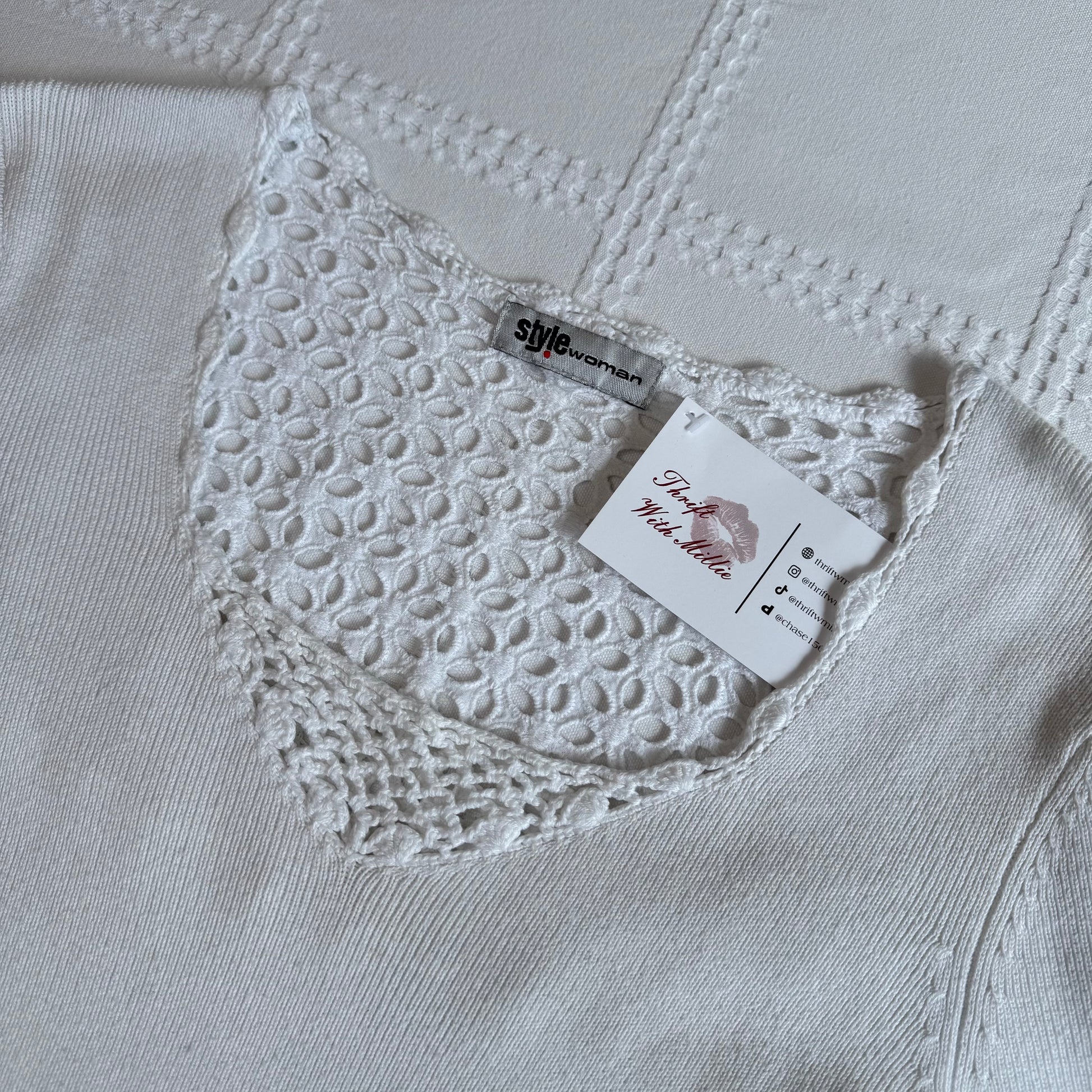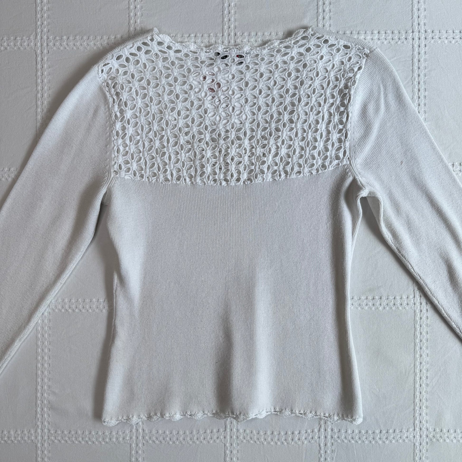 Adore this white knit longsleeve with broderie lace detailing 🌺