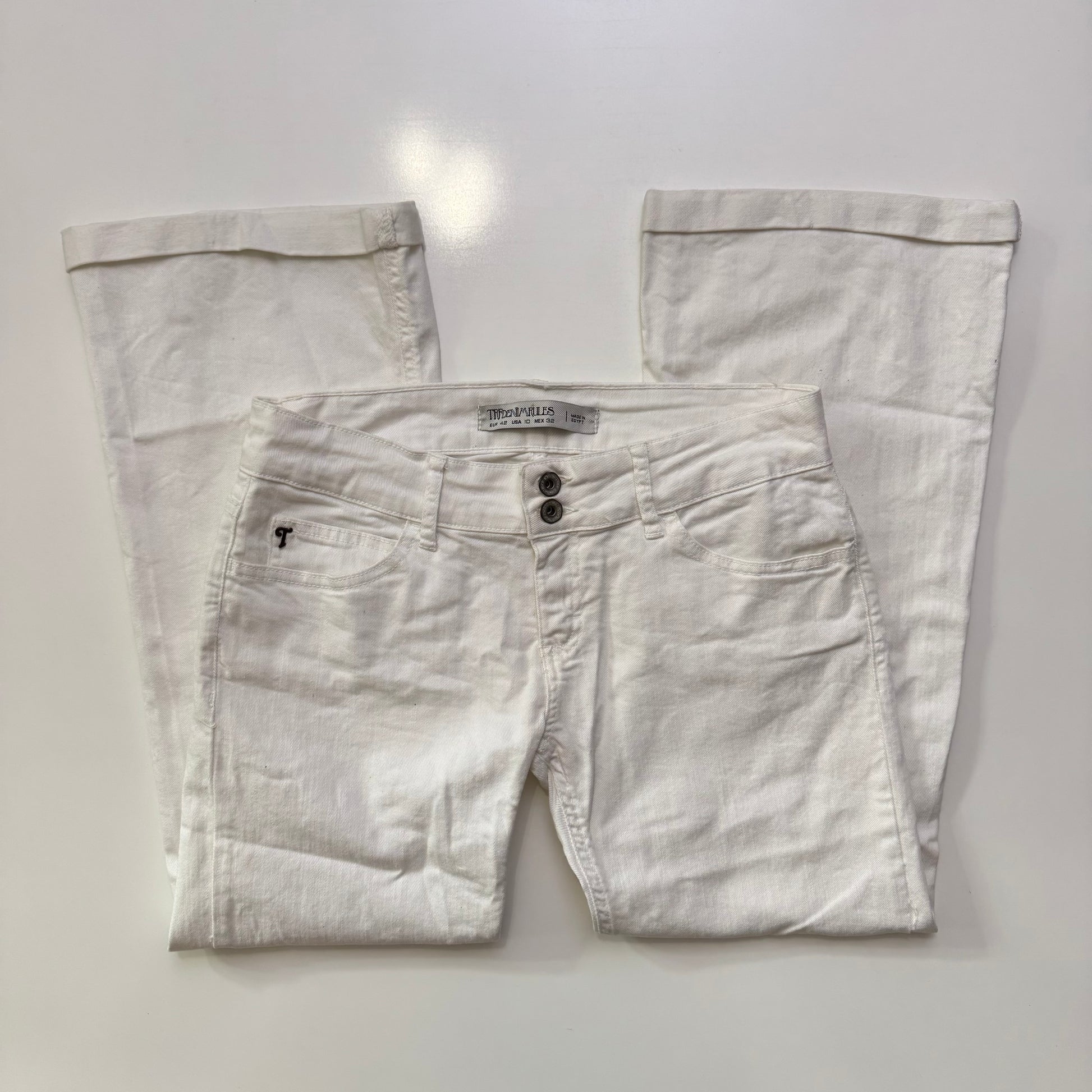 Perfect 00s white low rise flared jeans with double button closure 💘 Such cute & flattering jeans!
