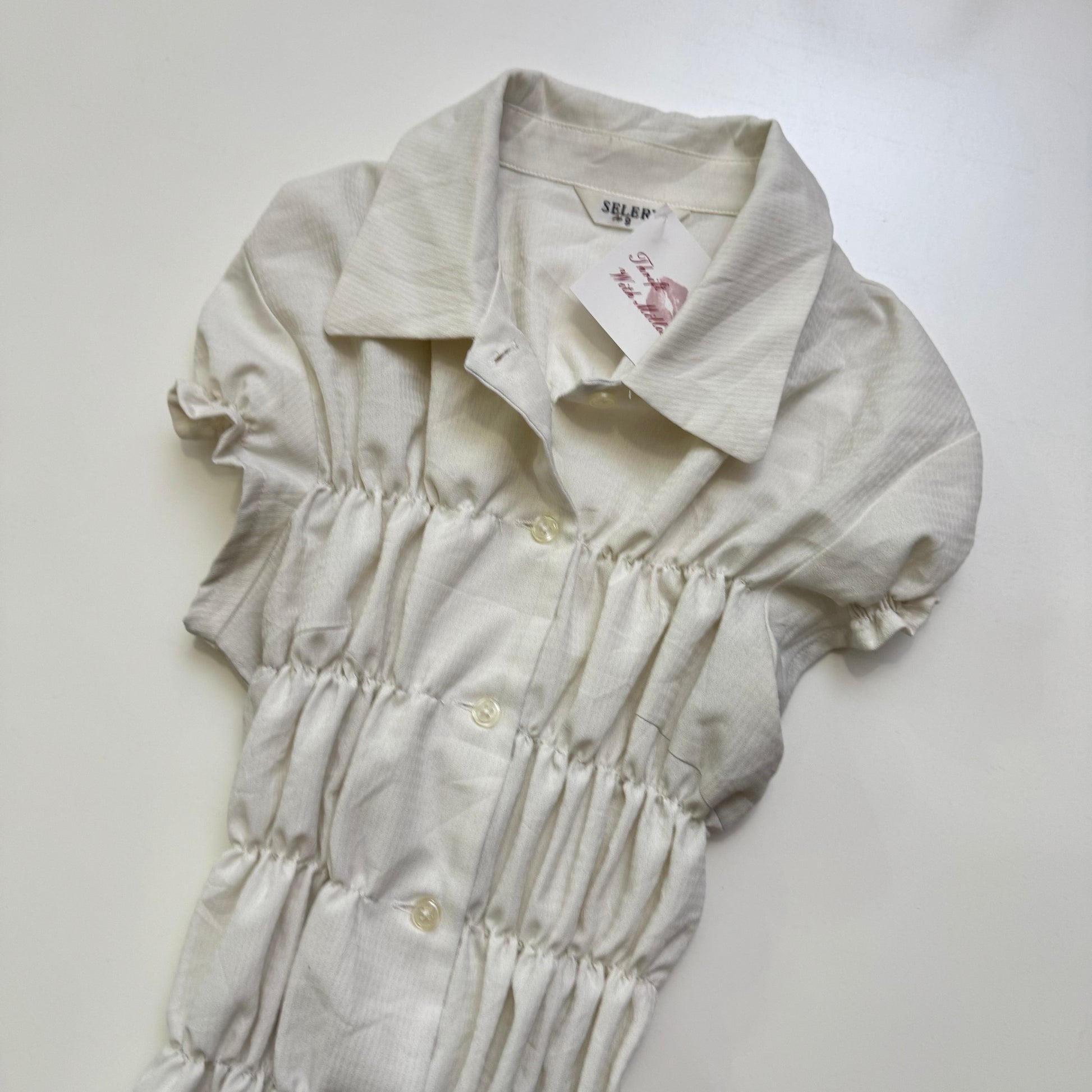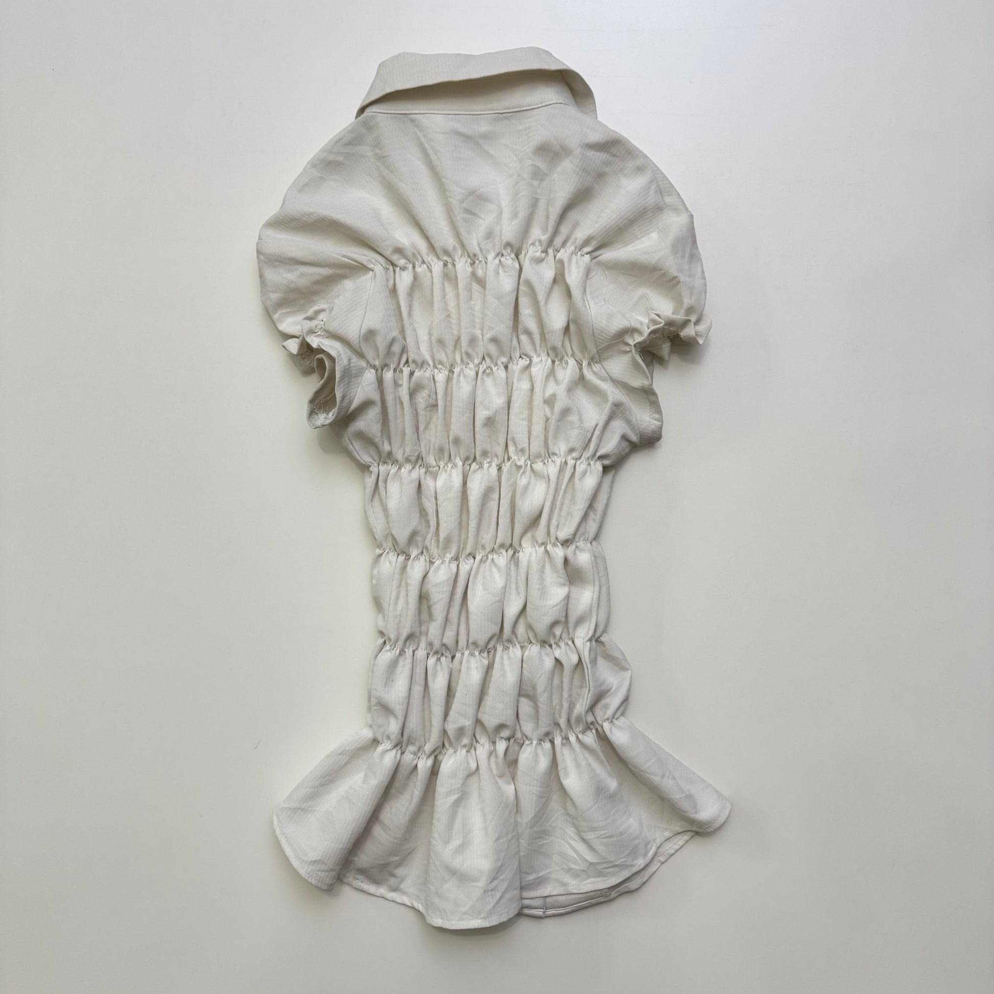 White Ruched Button Up Blouse